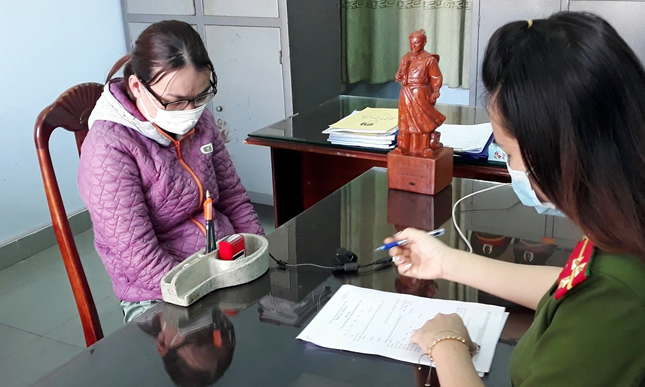 Công an huyện Núi Thành lấy lời khai đối tượng Yến.