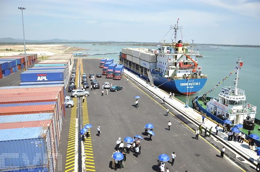 Thu ngân sách từ hoạt động xuất nhập khẩu vẫn bảo đảm tăng trong bối cảnh Việt Nam tham gia nhiều hiệp định thương mại tự do. Trong ảnh: Tàu hàng cập cảng Chu Lai, Quảng Nam. |