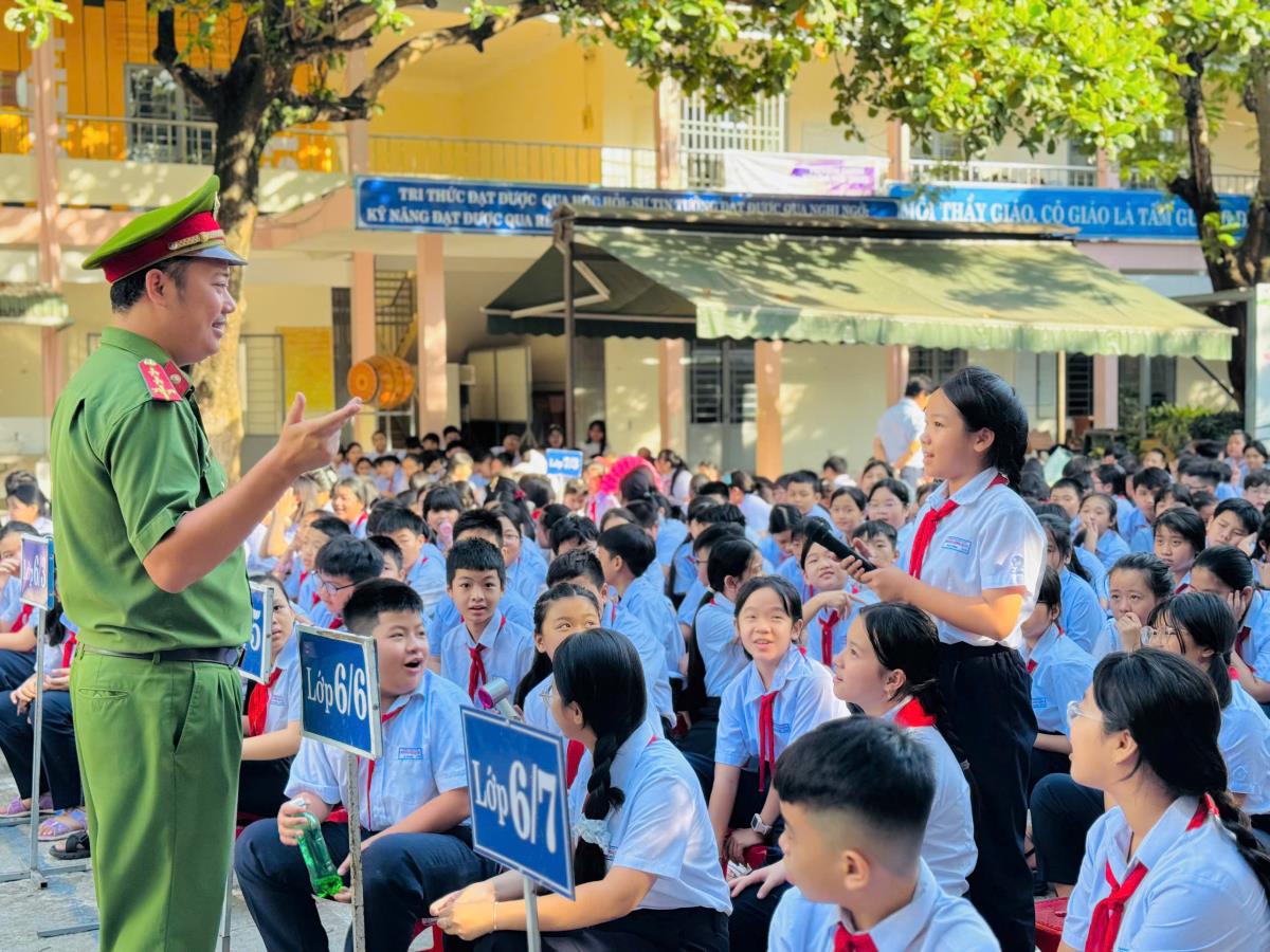 Sáng cùng ngày, Công an phường Sơn Trà phối hợp với Trường THCS Phạm Ngọc Thạch tổ chức tuyên truyền chuyên đề về TTATGT, phòng chống ma túy học đường, tội phạm công nghệ cao và các hành vi vi phạm pháp luật liên quan đến người dưới 18 tuổi. Hoạt động thu hút sự tham gia của gần 1.500 học sinh toàn trường.