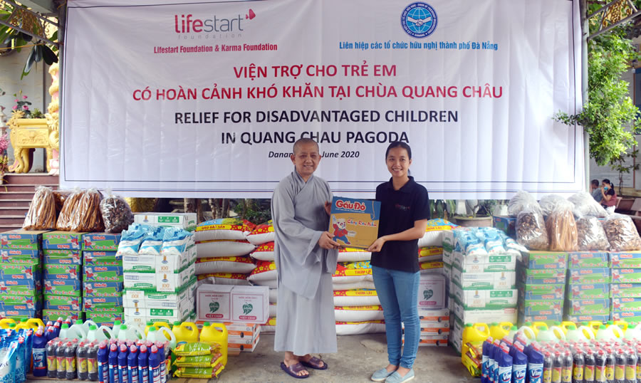 Đà Nẵng - Sáng 14-6, Liên hiệp các tổ chức hữu nghị thành phố Đà Nẵng đến thăm và tặng quà cho trẻ em tại chùa Quang Châu (xã Hòa Châu, H. Hòa Vang), do Tổ chức Lifestart foundation (Úc) viện trợ. Quà tặng gồm gạo, mì tôm và các loại nhu yếu phẩm với tổng trị giá gần 50 triệu đồng. Tổ chức Lifestart foundation hiện có trụ sở tại thành phố Hội An (tỉnh Quảng Nam). Được biết, chùa Quang Châu hiện đang nuôi dưỡng gần 140 trẻ bị bỏ rơi và các trẻ em có hoàn cảnh đặc biệt khó khăn, đồng thời nhà chùa còn trợ dưỡng các phụ nữ đơn thân đang mang thai và nuôi con nhỏ.