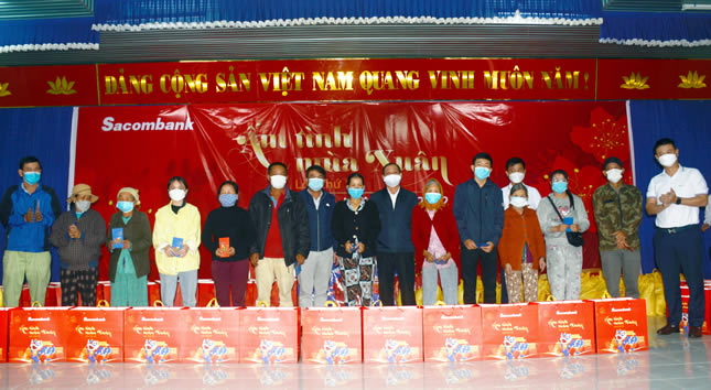 Sáng 19-1, tại trụ sở UBND P.Điện Nam Trung (TX Điện Bàn, Quảng Nam), Ngân hàng TMCP Sài Gòn Thương Tín (Sacombank) – Chi nhánh Đà Nẵng đã trao 200 suất quà Tết với trị giá mỗi suất 500.000 đồng (gồm có 250.000 đồng tiền mặt và hàng thiết yếu là gạo, mì ăn liền, bánh kẹo) cho 200 hộ nghèo trên địa bàn phường. Ông Hoàng Thanh Hải, Giám đốc Sacombank – Chi nhánh Đà Nẵng cho biết cùng thời điểm này, 51 chi nhánh Sacombank tại 51 tỉnh, thành khác cũng đồng loạt tổ chức trao quà tết cho người nghèo tại các địa phương với tổng giá trị gần 6 tỷ đồng.