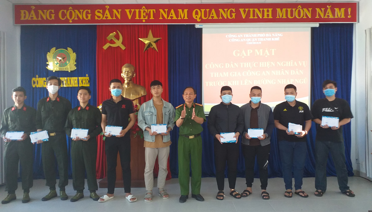 ĐÀ NẴNG- Chiều ngày 24-2, Thượng tá Trần Văn Tám, Trưởng CAQ Thanh Khê chủ trì cuộc gặp mặt 44 công dân trên địa bàn 10 phường thực hiện nghĩa vụ tham gia CAND trước khi lên đường nhập ngũ. Thay mặt Đảng ủy, lãnh đạo CAQ Thanh Khê, Thượng tá Trần Văn Tám mong rằng tất cả thanh niên lên đường nhập ngũ lần này phát huy truyền thống của quận, cố gắng trong thời gian huấn luyện chấp hành nghiêm điều lệnh, cố gắng rèn luyện, phấn đấu, tu dưỡng, giữ gìn tốt kỹ luật trên thao trường cũng như trong doanh trại; phấn đấu hoàn thành tốt mọi nhiệm vụ được giao.