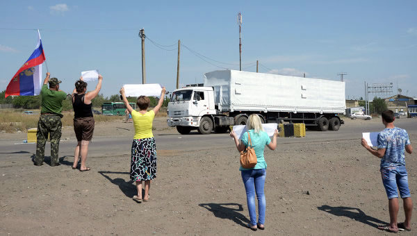 Cùng ngày, đoàn xe cứu trợ nhân đạo gồm 100 xe tải của Nga mang theo 1.000 tấn hàng gồm thực phẩm, thuốc men, vật liệu xây dựng, quần áo mùa đông đến thành phố Lugansk và Donetsk, miền đông Ukraine.