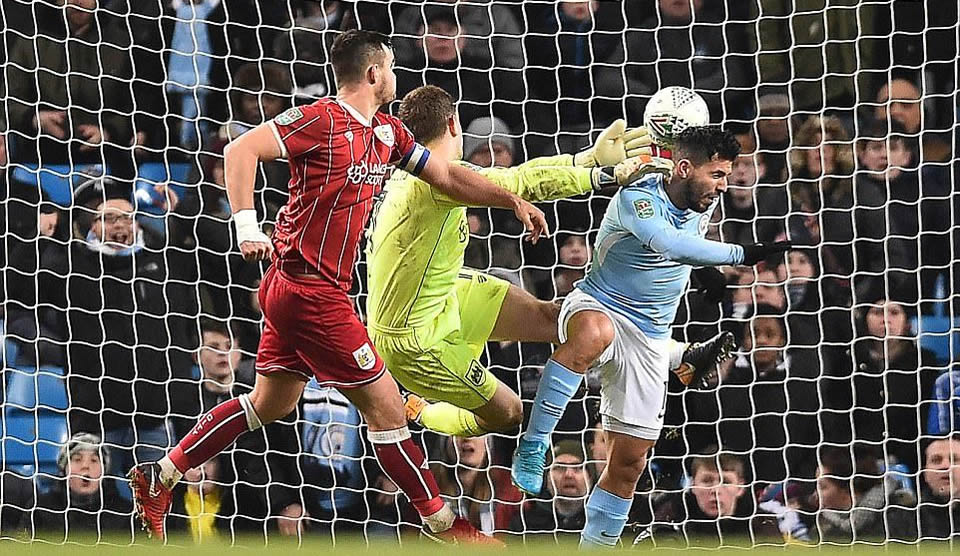 Tuy nhiên, Aguero đâu phải là con bài duy nhất của HLV Guardiola. 9 phút Aguero không “quậy nát” được hàng thủ Bristol City thì ông thầy người Tây Ban Nha không đẩy thêm một tiền đạo nữa vào sân mà chọn cách đưa hậu vệ cánh Kyle Walker bởi vì tấn công biên là một trong những phương sách của Guardiola. Sự xuất hiện của cựu hậu vệ Tottenham nhanh chóng làm hàng thủ Bristol City rối loạn. Thủ môn Fielding chơi 91 phút tuyệt vời nhưng anh đành thúc thủ trước Aguero ở phút 92. Cú đánh đầu chính xác của tiền đạo Argentina sau đường chuyền của Silva đã giúp Manchester City lấy vé dự bán kết League Cup.