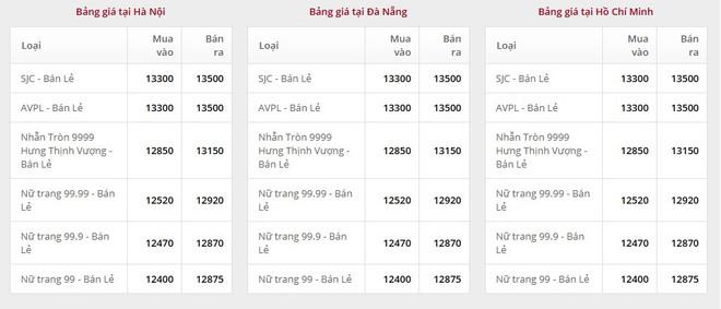 Giá vàng tại Công ty Trách nhiệm hữu hạn Một thành viên Vàng bạc Đá quý Sài Gòn (SJC):