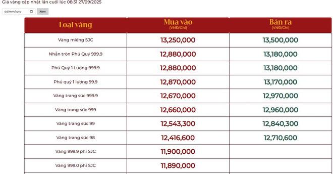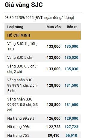 Cập nhật bảng giá vàng hôm nay (28/9) tại Công ty Trách nhiệm hữu hạn Một thành viên Vàng bạc Đá quý Sài Gòn (SJC), Công ty Cổ phần Đầu tư vàng Phú Quý, Tập đoàn Vàng bạc Đá quý Doji.