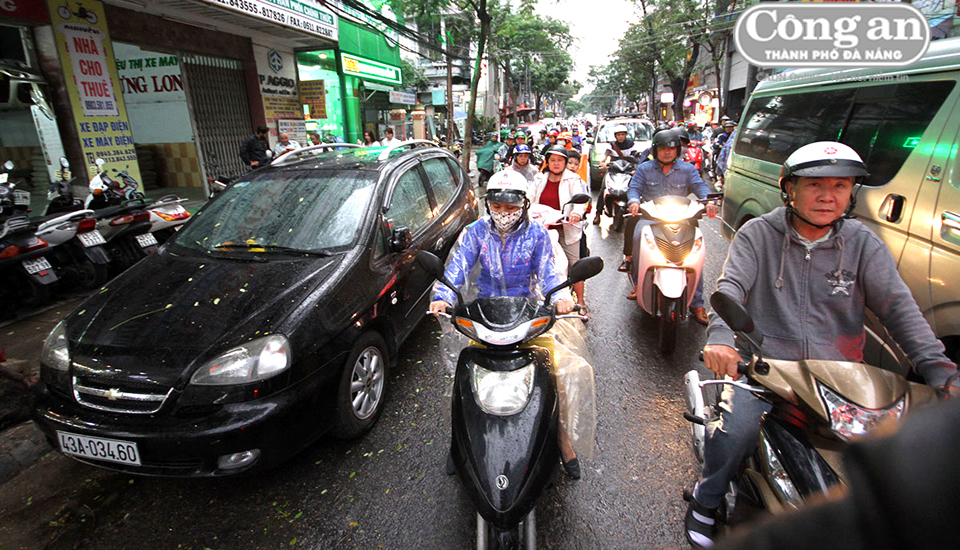 Mặc dù chuyển thành đường một chiều nhưng vào giờ cao điểm, đường Phan Châu Trinh (Đà Nẵng) vẫn thường xảy ra ùn tắc cục bộ. |