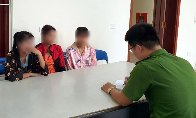 Lực lượng Công an lấy lời khai của các thai phụ. |