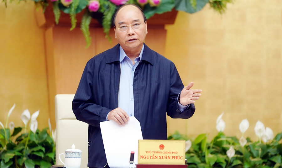Thủ tướng Nguyễn Xuân Phúc phát biểu tại cuộc họp Thường trực Chính phủ chiều 16-3 về công tác phòng chống dịch Covid-19. |