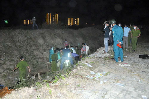| Lực lượng KTHS khám nghiệm hiện trường vụ giết người yêu cũ chôn xác tại Q. Ngũ Hành Sơn. |