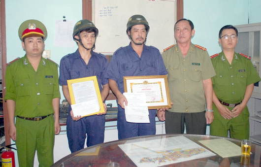 (Cadn.com.vn) - ĐÀ NẴNG - Chiều 11-6, thừa ủy nhiệm Giám đốc CATP Đà Nẵng, Thượng tá Dương Minh Thiện, Phó trưởng CAQ Thanh Khê đã trao tặng Giấy khen và tiền thưởng cho Đội Dân phòng cơ động P.Chính Gián do có thành tích đột xuất, xuất sắc trong phong trào toàn dân BVANTQ tháng 5-2015. Dịp này, Cơ quan Thường trực BCĐ 138 Q.Thanh Khê cũng đã khen thưởng cho tổ tuần tra theo QĐ 7661 có thành tích xuất sắc trong đấu tranh PCTP.
