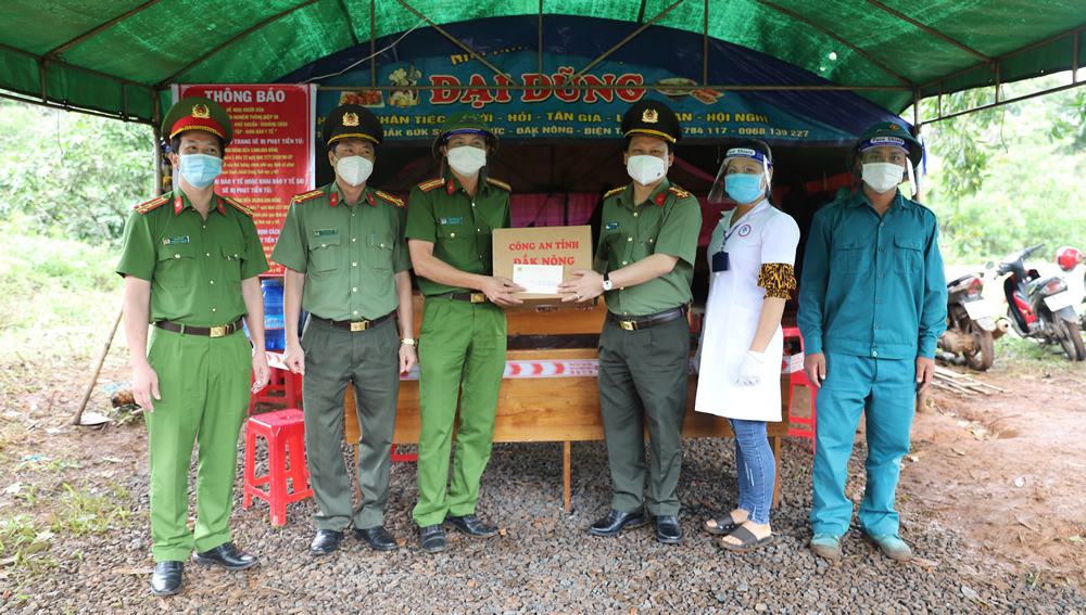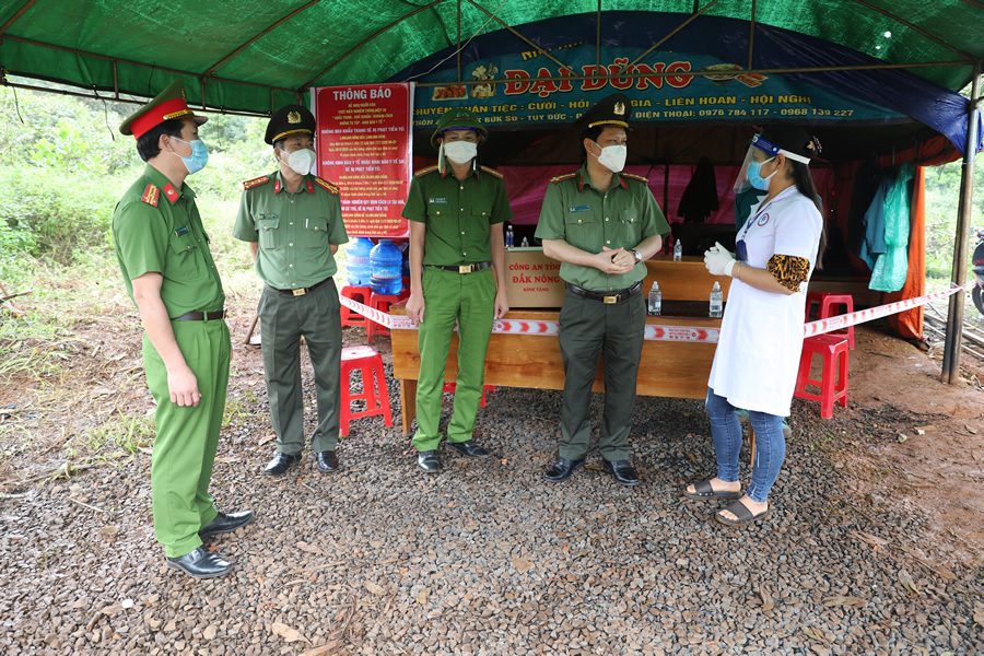 Ngày 30/7, Đại tá Bùi Quang Thanh, Giám đốc Công an tỉnh Đắk Nông và Đại tá Hồ Quang Thắng, Phó Giám đốc Công an tỉnh cùng đoàn công tác đã đến kiểm tra công tác bảo đảm an ninh, trât tự (ANTT) và phòng, chống dịch Covid-19 trên địa bàn huyện biên giới Tuy Đức. Đây là 1 trong 2 địa phương của tỉnh Đắk Nông tính đến thời điểm này chưa có trường hợp nào nhiễm Covid-19.