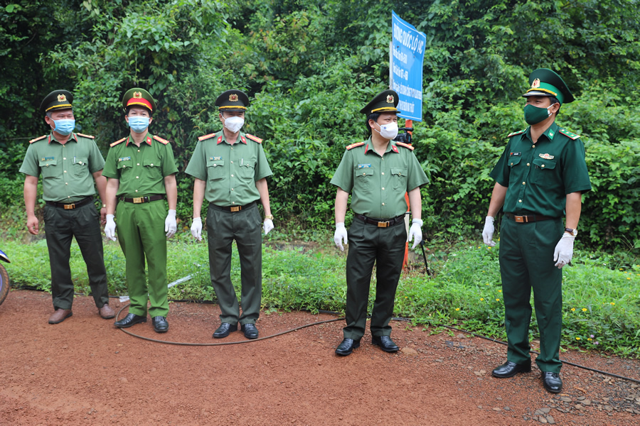 Đại tá Bùi Quang Thanh, Giám đốc Công an tỉnh Đắk Nông cùng đoàn kiểm tra công tác bảo đảm ANTT và phòng, chống dịch ở địa bàn biên giới. |