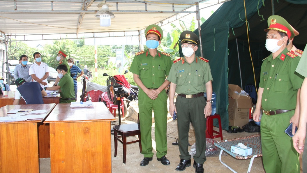 Thiếu tướng Nguyễn Đức Dũng - Giám đốc Công an tỉnh Quảng Nam kiểm tra, động viên CBCS Công an tỉnh tại chốt phòng chống dịch. |