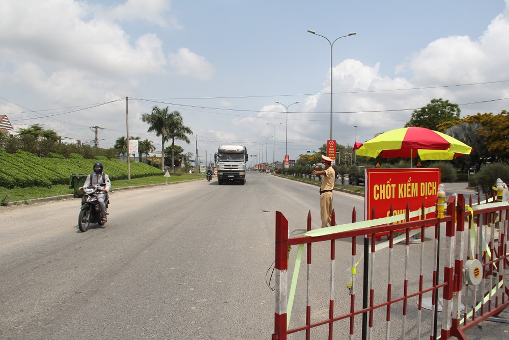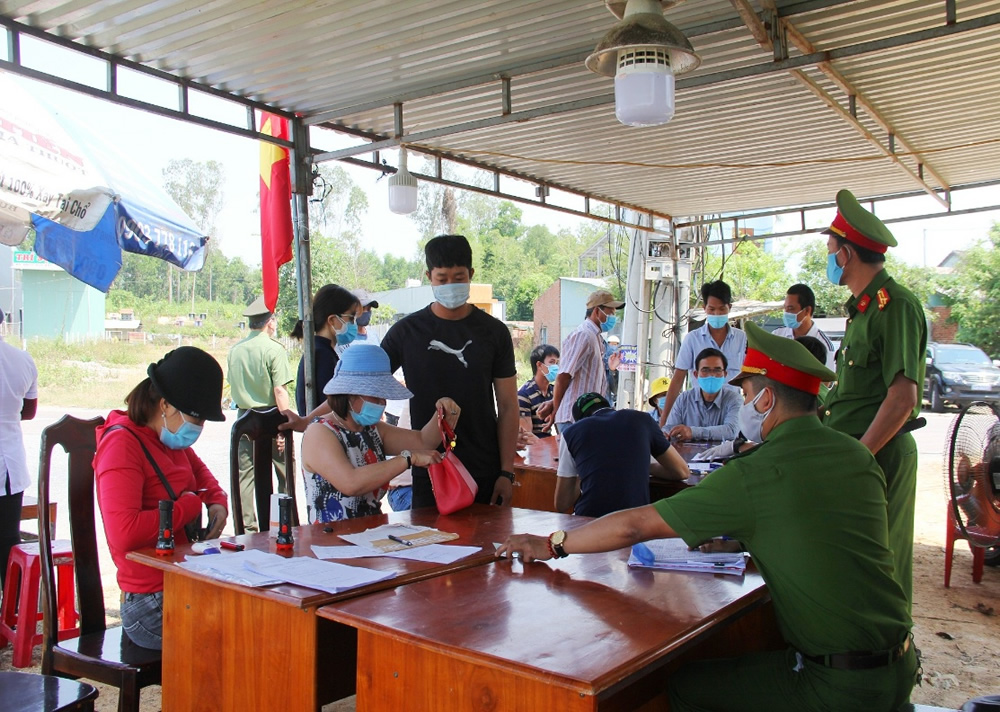Công an tỉnh Quảng Nam phối hợp với các đơn vị chức năng làm nhiệm vụ tại các chốt phòng chống dịch. |