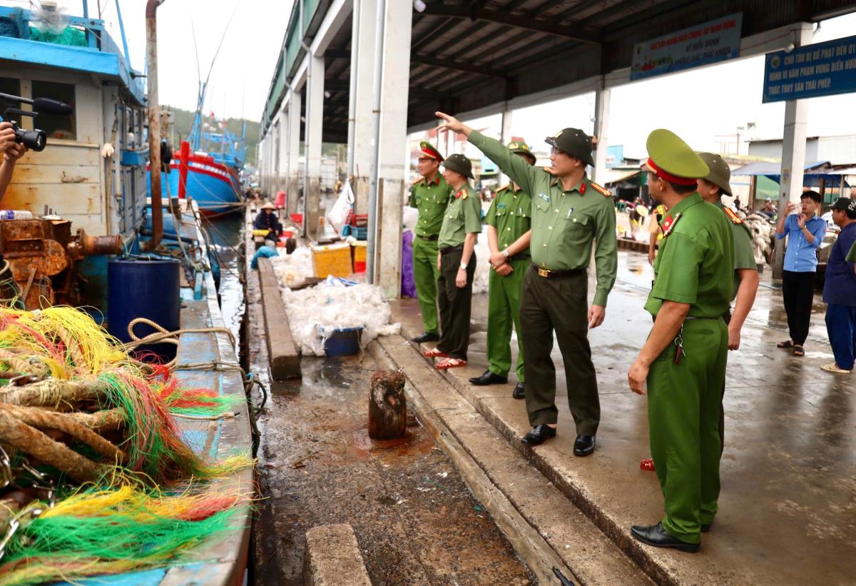 Tại khu vực cảng cá Sa Huỳnh, nơi có hơn 140 tàu cá đã vào neo đậu, Đại tá Hồ Song Ân trực tiếp kiểm tra tình hình và yêu cầu các lực lượng Công an cơ sở phối hợp với chính quyền địa phương tăng cường giám sát, đảm bảo an toàn tuyệt đối cho người và tài sản của ngư dân.
