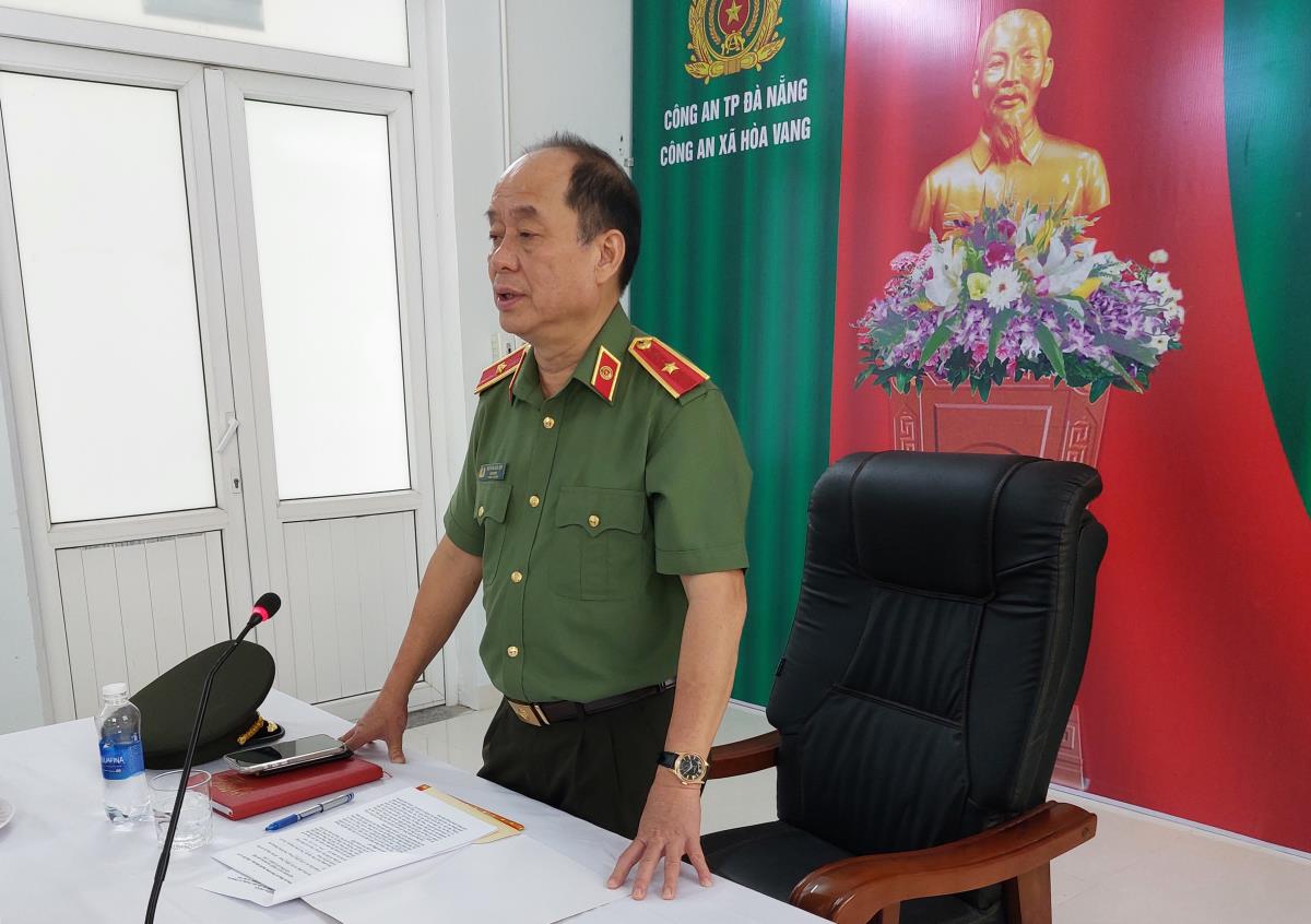 Báo cáo tại buổi làm việc, Thượng tá Mai Xuân Dương - Trưởng Công an xã Hòa Vang cho biết, Công an xã Hòa Vang được thành lập trên cơ sở sáp nhập nguyên trạng 2 xã Hòa Phong và Hòa Phú cũ của huyện Hòa Vang trước đây, có vị trí nằm ở vùng giáp ranh với khu vực trung tâm của TP Đà Nẵng. Tổng diện tích đất tự nhiên khoảng 108km2, dân số khoảng 26.428 người, được phân bố trên 21 thôn. Hạ tầng giao thông trên địa bàn xã đa dạng, bao gồm tuyến QL14B, 14G, đường vành đai phía Tây thành phố, các tuyến đường huyện, liên xã và hệ thống giao thông nông thôn trải rộng trên 21 thôn, được đầu tư tương đối đồng bộ. Trên địa bàn xã có các công trình trọng điểm như hệ thống điện lưới 500kV Bắc Nam đi qua và Chi cục dự trữ Nhà nước Hòa Vang.