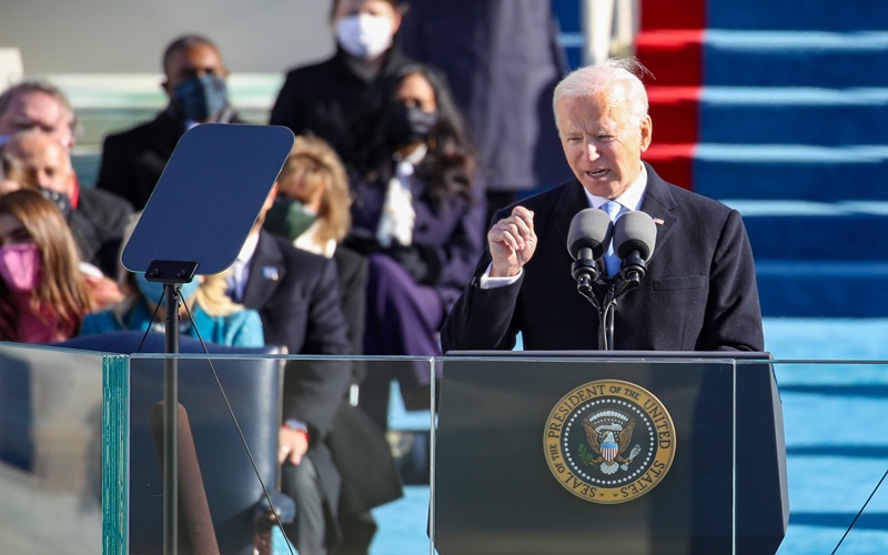 Ông Biden phát biểu tại lễ nhậm chức vào ngày 20-1-2021. Ảnh: CNN