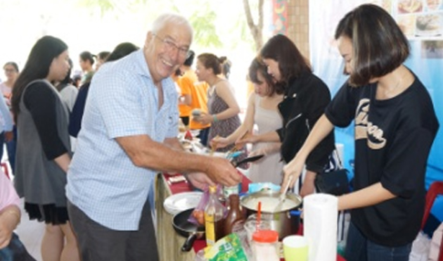| Ông Jean Cabane, đầu bếp người Pháp tại chương trình giao lưu. |