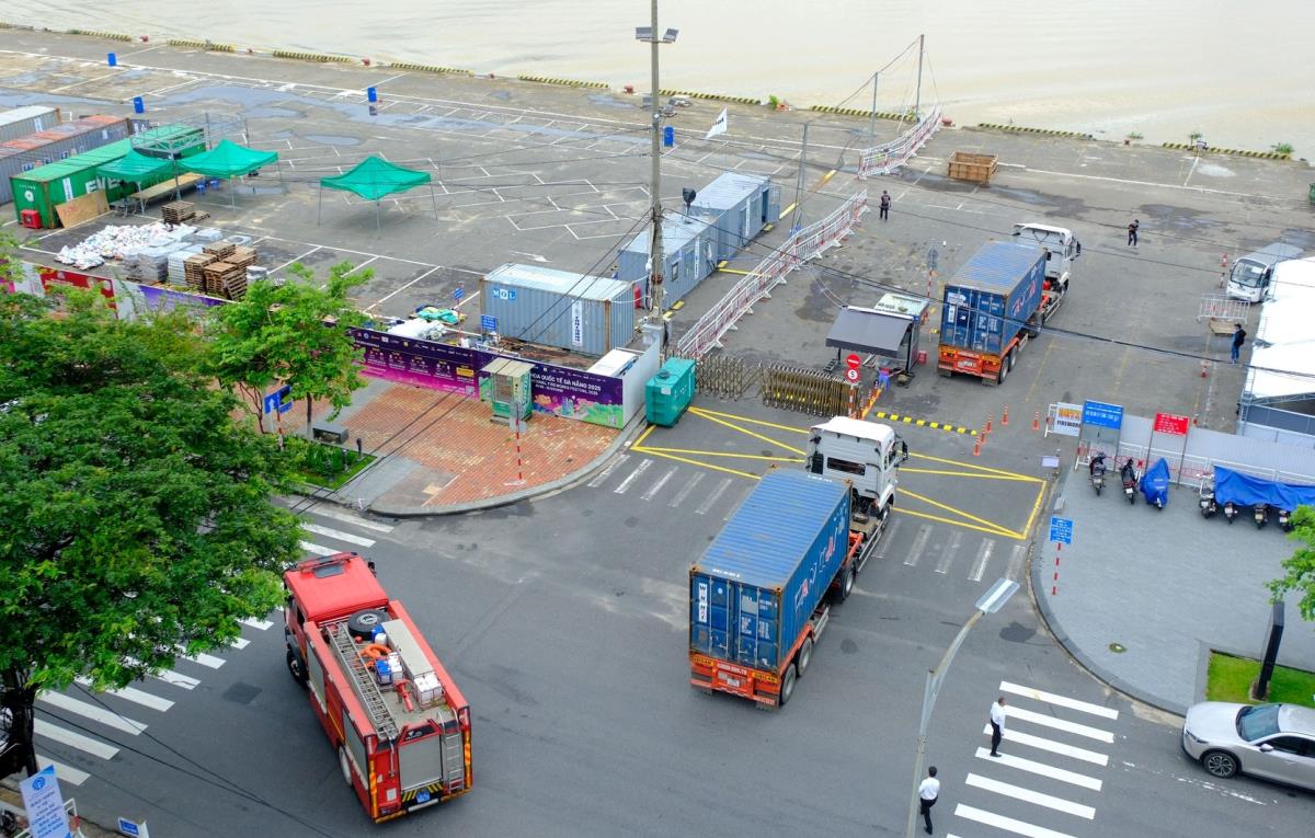 Từ kho pháo đến bãi bắn sông Hàn là một hành trình khép kín, có tổ chức, được bảo vệ nghiêm ngặt. Mỗi chuyến áp tải đều có kíp xe chữa cháy chuyên trách đi kèm. Khi pháo hoa được đưa đến bãi bắn, lực lượng Công an TP Đà Nẵng đã bố trí lực lượng thường trực 24/24 giờ. Những cán bộ, chiến sĩ dày dạn kinh nghiệm giám sát an toàn pháo, phối hợp cùng chuyên gia quốc tế kiểm tra.