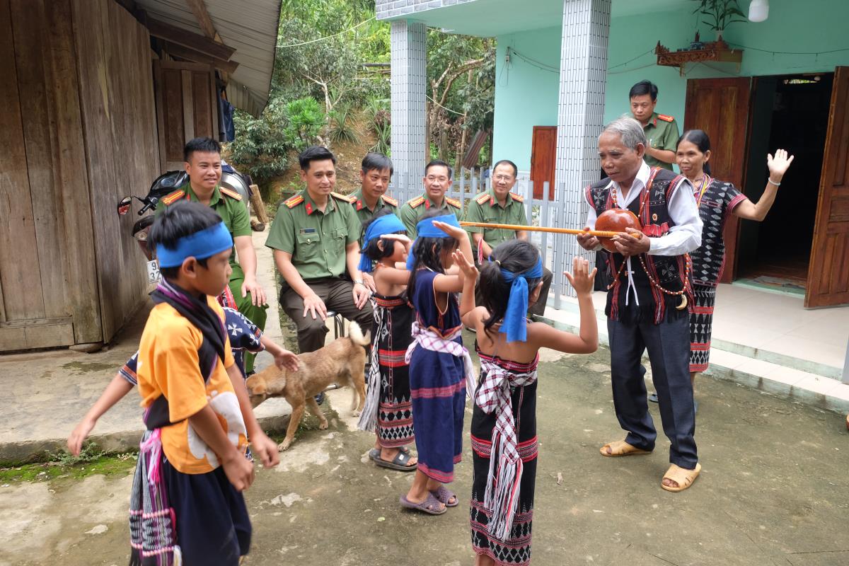 Trong khuôn khổ chuyến công tác, Đại tá Nguyễn Đại Đồng đã đến thăm hỏi, động viên một số già làng, người có uy tín tiêu biểu trên địa bàn các xã. Tại xã Hùng Sơn, đoàn đã đến nhà ông Cơ Lâu Héo (1989, trú thôn Voong) và ông Bhling Murr (1981, trú thôn Abaanh I), những người tích cực tham gia giữ gìn an ninh trật tự tại cơ sở. Tại xã Tây Giang, Đại tá Nguyễn Đại Đồng đến thăm ông Bhriu Pố (1949, trú thôn Arồh), người luôn gương mẫu, tận tụy với cộng đồng, góp phần gìn giữ bản sắc văn hóa dân tộc Cơ Tu. Đoàn cũng đến xã A Vương thăm già làng A Lăng Nhiáh (1950, trú thôn Atêêp), người có uy tín lâu năm, được bà con tín nhiệm, và ông A Lăng Brư (1964, trú thôn Bhlôh), người nhiều năm đồng hành cùng chính quyền địa phương trong công tác tuyên truyền, vận động đồng bào chấp hành pháp luật.