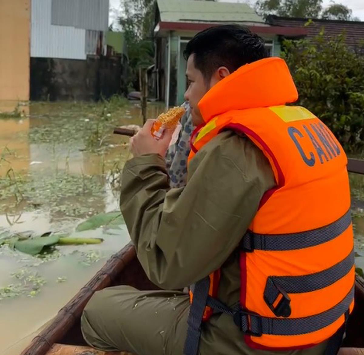 Giữa dòng nước vẫn còn dâng cao, 12 giờ trưa 30-10, đoàn cứu trợ vẫn tiếp tục chèo thuyền đến từng ngôi nhà. Bữa cơm chỉ là gói mì khô ăn vội trên mặt nước, nhưng ai nấy đều ấm lòng. Cũng giữa dòng nước ấy, tin nhắn thông báo các thành viên của Đội Thanh niên xung kích tiếp tục quay về Công an TP để nhận hàng mới và di chuyển sang địa bàn khác vang lên. Cả đội lại tất bật lên đường.