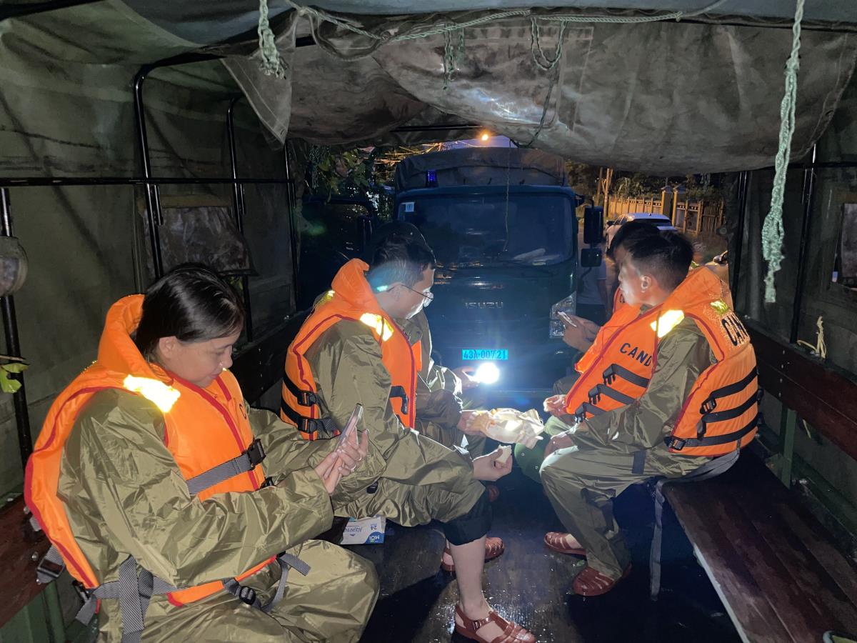 Khi đêm buông xuống, bên ngoài là biển nước đen đặc, chiếc xe tải chở hàng của Công an TP vẫn lầm lũi băng qua những con đường ngập nửa bánh xe. Trong khoang xe chật hẹp, Thượng úy Nguyễn Thị Hồng Hoa, cán bộ Ủy ban kiểm tra Đảng ủy Công an TP tranh thủ gọi về cho con nhỏ: "Tối nay chưa về với con được! Mẹ xin lỗi con! Mẹ đang đi hỗ trợ bà con vùng ngập!". Ngồi sau chiếc thùng xe rung lắc, giọng chị nghẹn lại, vừa thương con, vừa vững lòng vì nhiệm vụ.