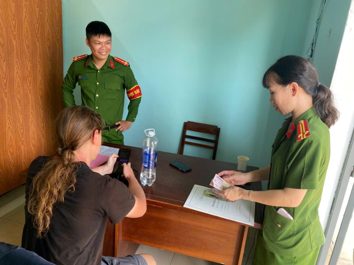 Trong quá trình làm nhiệm vụ vào chiều 30-3-2026, Trung tá H Li Ti ÊBan Krông (cán bộ Công an phường Đăk Bla, Quảng Ngãi) thấy một nam thanh niên ngoại quốc đứng bên lề đường ra hiệu xin nhờ xe nhưng gặp khó khăn nên đến hỏi thăm và trấn an.