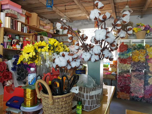 Điều ngạc nhiên khi bước vào tiệm hoa Mimosa nằm trên đường Trần Hưng Đạo (P. Điện Ngọc, TX Điện Bàn, Quảng Nam) không phải là một thế giới màu sắc của muôn vàn loại hoa đang tỏa hương mà chính là những bông hoa được "hô biến" từ những tờ giấy màu vô tri qua bàn tay khéo léo của cô gái 8x Phạm Thị Trinh.