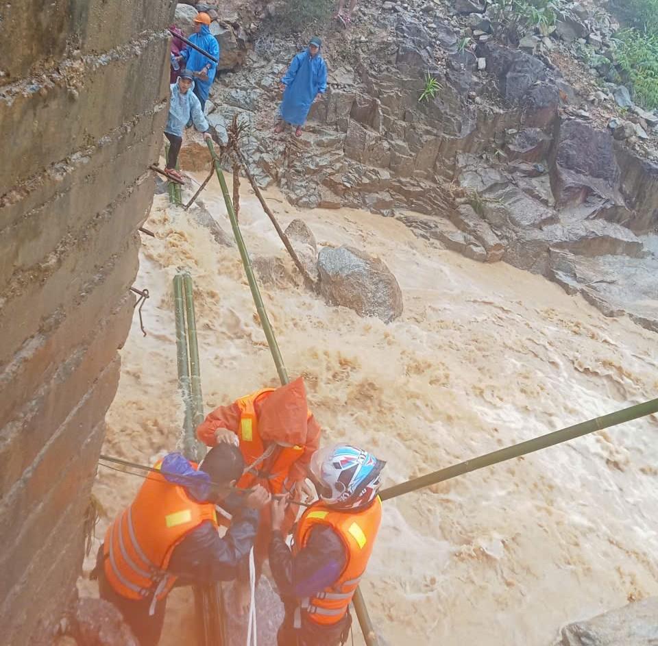 Lúc này, lực lượng chức năng xã Phước Thành cũng đưa cô giáo Khuyên đi bộ, vượt qua nhiều điểm sạt lở để ra hướng Phước Chánh. Khi đến khu vực nhánh suối Đắc Mi thì không thể tiếp tục di chuyển được nữa, do những ngày qua khu vực này mưa lớn, nên mực nước suối cao, hung hãn chảy xiết. Quyết không bỏ cuộc, lực lượng chức năng 2 xã (trong đó Phước Chánh là chủ công - PV) đã quyết định làm cầu tạm để đưa cô giáo sang suối.