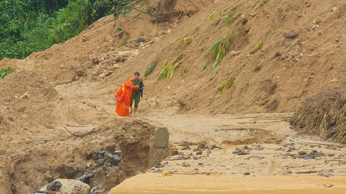 Trước đó, sáng 1-11, Công an xã Trà Tân nhận được thông tin đề nghị hỗ trợ từ Công an xã Trà Giáp (TP Đà Nẵng) về trường hợp một sản phụ ở thôn 1, xã Trà Giáp mang thai 6 tháng bị dọa sinh non, kèm vết mổ thai nhiều lần trước đó, đe dọa trực tiếp đến tính mạng sản phụ nếu không được chuyển tuyến kịp thời. Thời điểm này, trên tuyến QL40B qua địa bàn xã nhiều điểm sạt lở cũ và mới liên tục xảy ra, khiến việc đi lại vô cùng khó khăn và nguy hiểm.