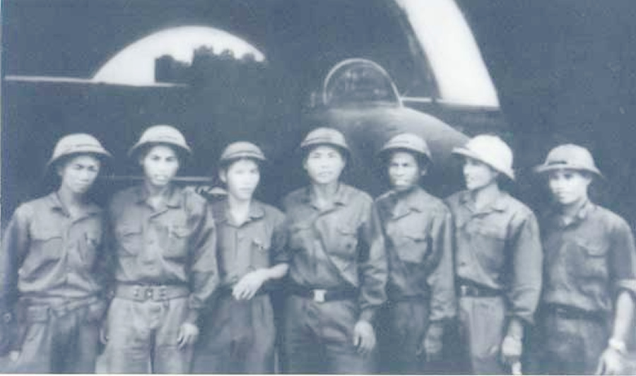 CCB Trần Như Tiếp (giữa) cùng đồng đội tại sân bay Đà Nẵng trong ngày giải phóng. Ảnh tư liệu. |