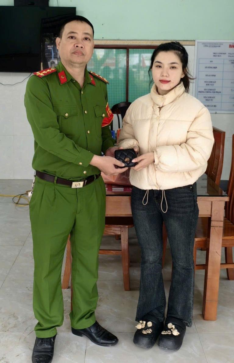 Công an xã Đại Lộc trao lại tài sản cho chị Hiền.