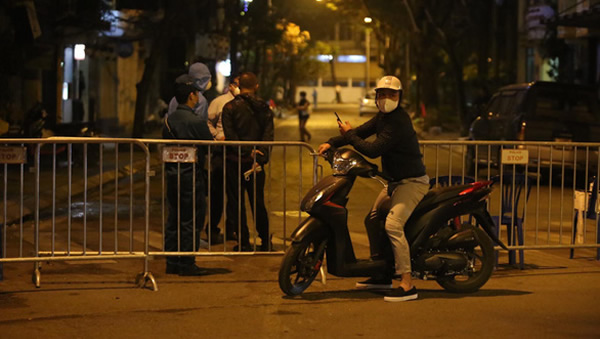 Rào chắn tại khu phố Châu Long, Hà Nội lúc 21h tối 6-3 - Video: CHÍ TUỆ