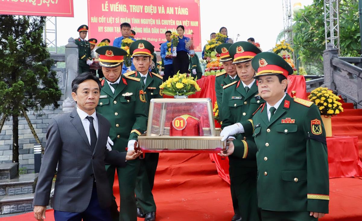 Sáng 26- 5, tại Nghĩa trang Liệt sĩ Nầm (huyện Hương Sơn), Tỉnh ủy, HĐND, UBND, Ủy ban Mặt trận Tổ quốc (MTTQ) Việt Nam tỉnh Hà Tĩnh tổ chức trọng thể lễ truy điệu và an táng 4 hài cốt liệt sĩ (HCLS) quân tình nguyện và chuyên gia Việt Nam hy sinh tại nước CHDCND Lào.