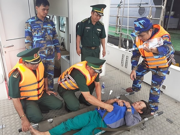 CBCS Hải đội Biên phòng 2 cấp cứu ngư dân bị nạn khi đang khai thác thủy sản trên biển. |