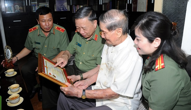 Đến thăm hỏi sức khỏe NSND Trọng Bằng, Bộ trưởng Tô Lâm gửi lời cảm ơn sâu sắc đến ông, người đã dành những tình cảm tốt đẹp, đã có nhiều cống hiến, đóng góp vào sự phát triển âm nhạc về đề tài CAND, qua đó khắc họa rõ nét hình ảnh những người chiến sĩ Công an trong cuộc chiến thầm lặng để bảo vệ cuộc sống bình yên cho nhân dân.