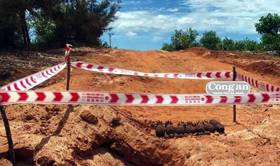 Hiện trường phát hiện hầm đạn còn sót lại sau chiến tranh dưới nền đường đất đỏ. |