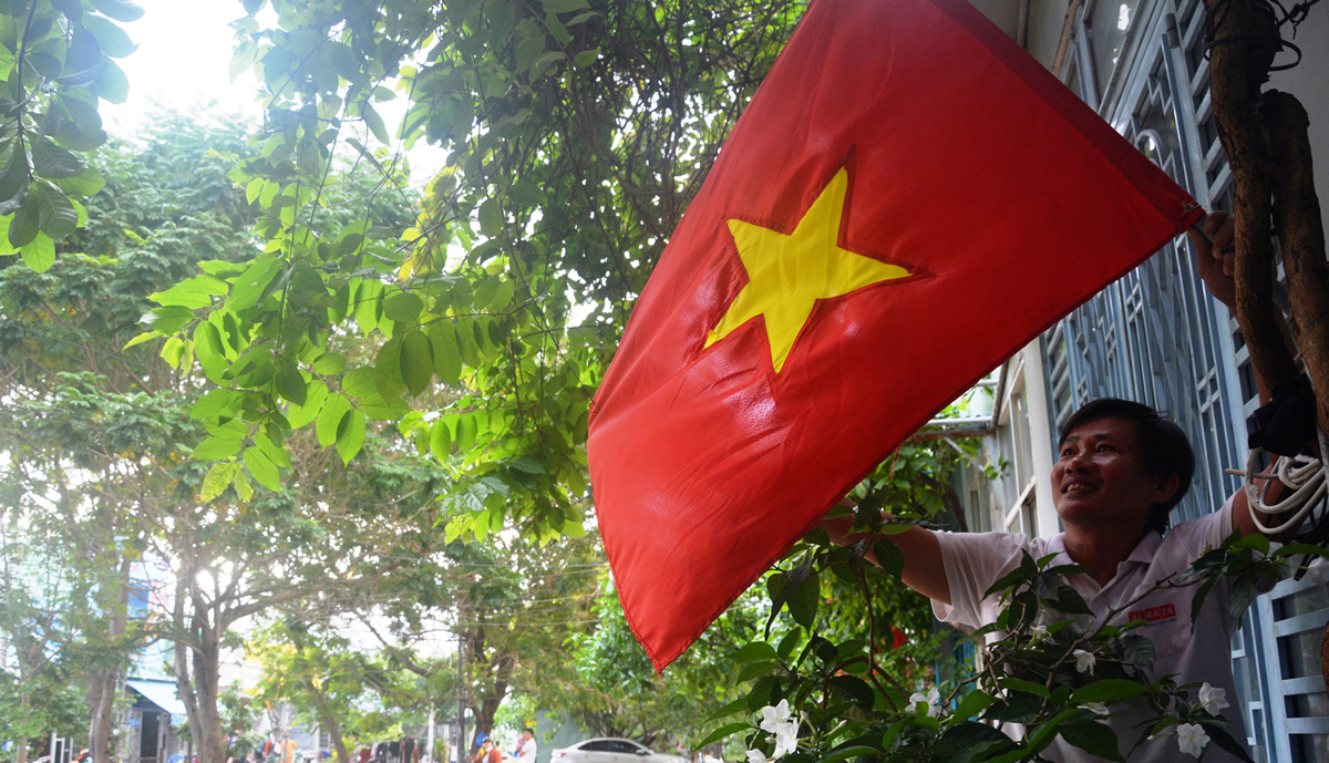 Người dân tổ 88 Nại Hiên Đông treo cờ Tổ quốc chào mừng Đại hội Đảng bộ TP. |