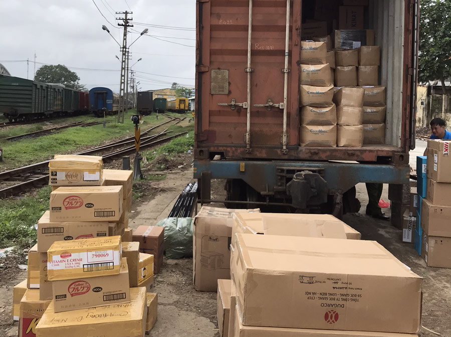 Lô hàng tạm giữ trên toa tàu hàng. |