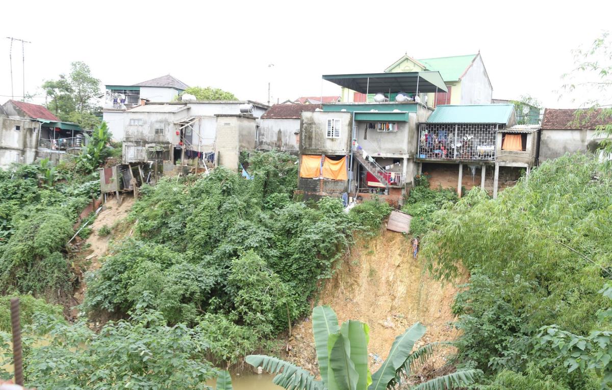 Cùng cảnh với nhà bà Minh, nhà bà Nguyễn Thị Thành (trú tại khối Phan Bội Châu, xã Vạn An) cũng bị sạt lở nhiều. Hiện gia đình bà Thành đang phải đi tá túc tại nhà người thân. Thỉnh thoảng bà Thành ghé nhà để dọn dẹp rồi lại đi. "Hôm bão số 10 bị mất điện, gia đình tôi đang nằm ngủ trong nhà thì nghe tiếng rầm lớn. Khi chạy ra kiểm tra thì thấy đất đá bị sạt lở vào gần nền nhà. Vợ chồng tôi và hai đứa cháu nội phải vội vàng di dời tài sản và người ngay trong đêm đến nhà người thân. Hiện tường và nền nhà đã xuất hiện nhiều vết nứt, sợ với tình trạng mưa lâu ngày, những vết nứt, sập cũ lại tiếp tục nới rộng ra, tình trạng sụt lún lại càng nghiêm trọng hơn. Vì vậy, gia đình tôi hiện chưa dám về nhà ở nữa vì nguy cơ mất an toàn, sạt lở có thể thể xảy ra bất cứ lúc nào. Chúng tôi mong muốn cơ quan chức năng sớm lên phương án để kè lại bờ sông hoặc tái định cư (TĐC) đến nơi khác" - bà Thành chia sẻ.
