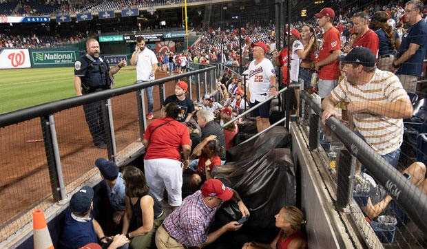 Các đoạn băng trên mạng xã hội cho thấy khán giả đến xem trận bóng chày ở sân vận động Nationals bỏ chạy sau thông báo về vụ nổ súng.