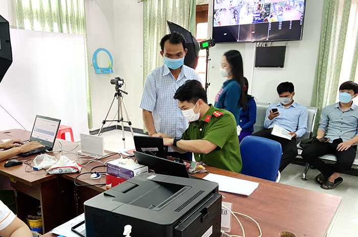 Khi chúng tôi đến cũng là lúc Thiếu úy Nguyễn Minh Đức đang thu thập vân tay của chị Thạch Thiên Tâm (1997, trú khu phố Mỹ Hòa, P. Hòa Hiệp Bắc), còn Thiếu úy Nguyễn Thủy Tiên đang nhập dữ liệu trên phiếu thu nhận thông tin công dân. Chị Nguyễn Trương Tuyết Băng (1989, trú Bàn Nham Bắc, P. Hòa Xuân Tây) tâm sự: "Sau khi tốt nghiệp đại học, tôi ở lại TPHCM làm việc nên phải chờ đến nay về quê đón Tết mới làm CCCD. Tôi thật sự hài lòng vì các anh, chị Công an tiếp xúc thân thiện, vui vẻ, trình tự, thủ tục thu thập thông tin, chụp ảnh, lấy vân tay... chỉ trong vài phút".