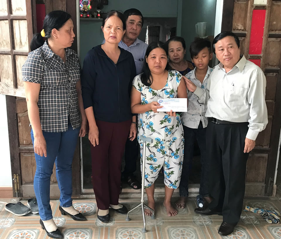 Bà Nguyễn Thị Hứa (thứ 2 từ trái sang phải) cùng Hội Bảo trợ Phụ nữ và trẻ em nghèo bất hạnh TP trao quà hỗ trợ cho một trường hợp cần giúp đỡ Q.Liên Chiểu. |