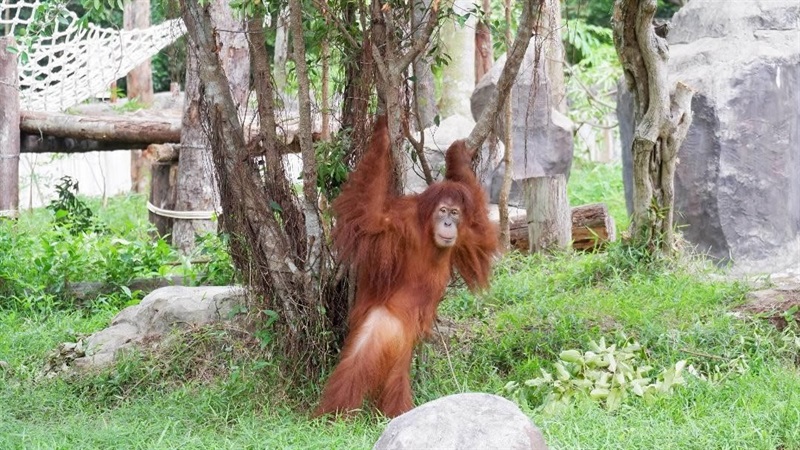 “Đây là tập tính đặc trưng của loài. Chính vì thế, khu vực chăm sóc của đười ươi tại Vinpearl Safari được thiết kế với rất nhiều cây xanh, bố trí các các lưới võng, sạp để khuyến khích chúng leo trèo, vận động, nhằm duy trì tốt nhất tập tính tự nhiên ấy”, anh Phong chia sẻ.