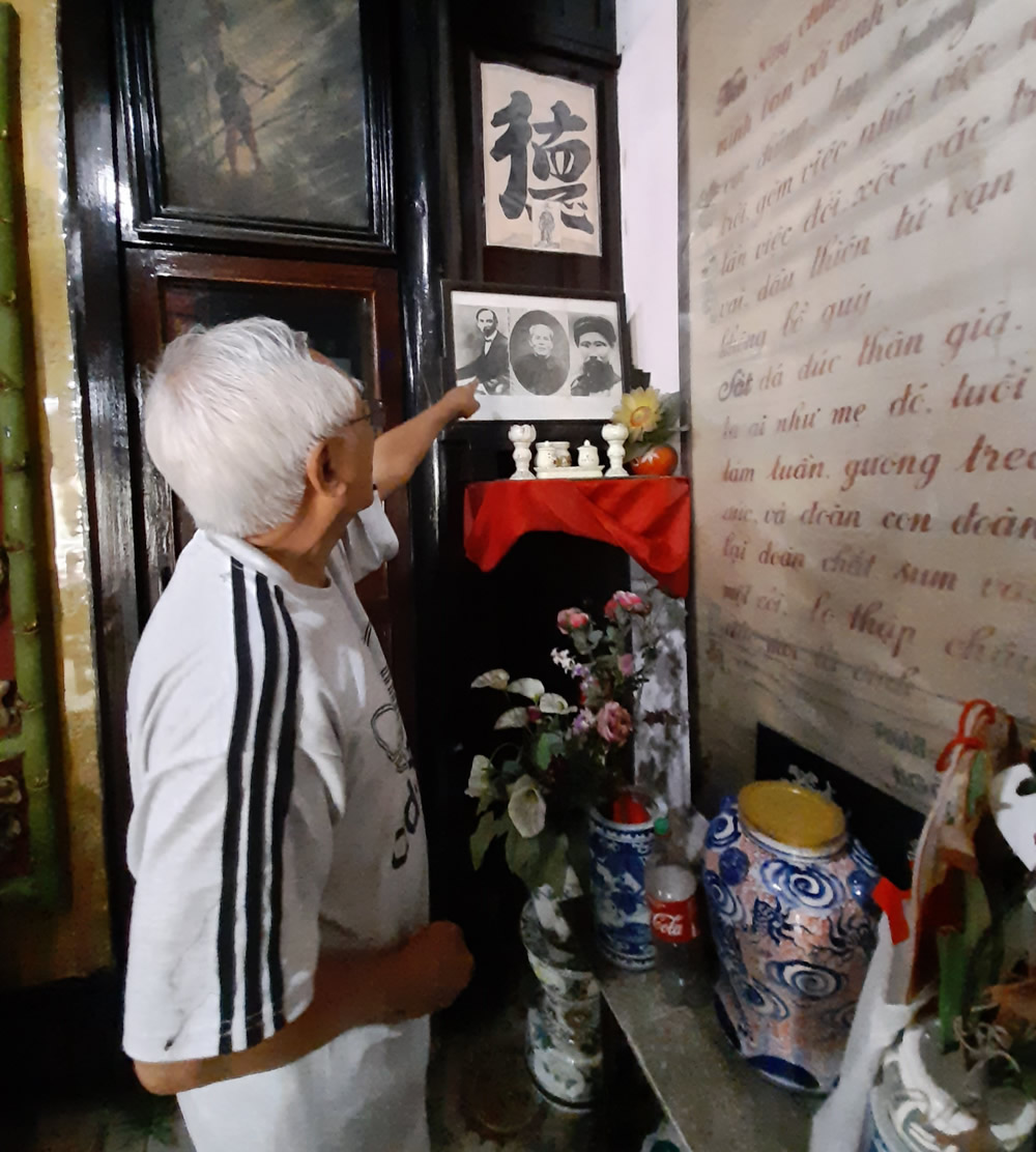 Ngoài thờ ông nội Cự Tùng, gia đình ông Nguyễn Văn Châu còn thờ các nhà cách mạng như Phan Bội Châu, Phan Châu Trinh... |