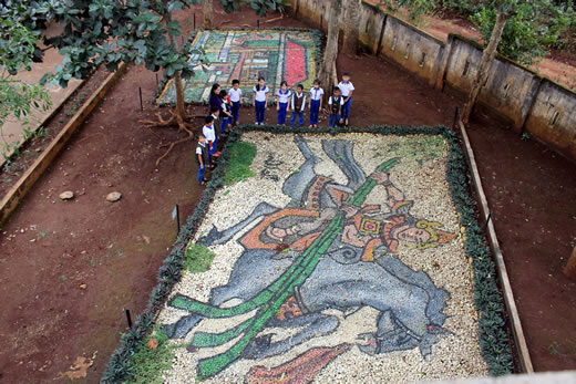 | Tranh đá Thánh Gióng và Bản đồ Việt Nam được thầy cô kỳ công thực hiện trong nhiều tháng. |