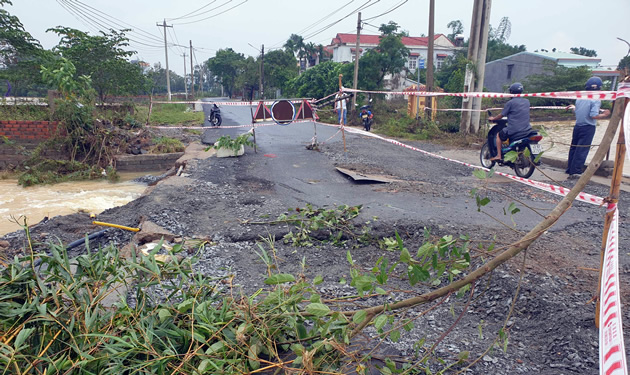 Sáng 13-10, sau khi lũ rút, người dân trong khu vực lại nơm nớp lo vì tuyến ĐH409 từ xã Hòa Tiến đi xã Hòa Khương (H. Hòa Vang, TP Đà Nẵng) và ngược lại đã xuất hiện 2 điểm bị lún sụt, xói lở. Đây là tuyến giao thông chủ yếu của người dân 2 xã nói trên và một phần của xã Điện Tiến (TX Điện Bàn, Quảng Nam) trong việc vận chuyển nông sản, gia cầm đến chợ Lệ Trạch... Trong lúc, đêm đến người dân lo ngại những tai nạn tiềm ẩn thì về phía các đơn vị chủ quản chỉ mới có động thái gia cố tạm thời và đặt rào chắn cảnh báo.