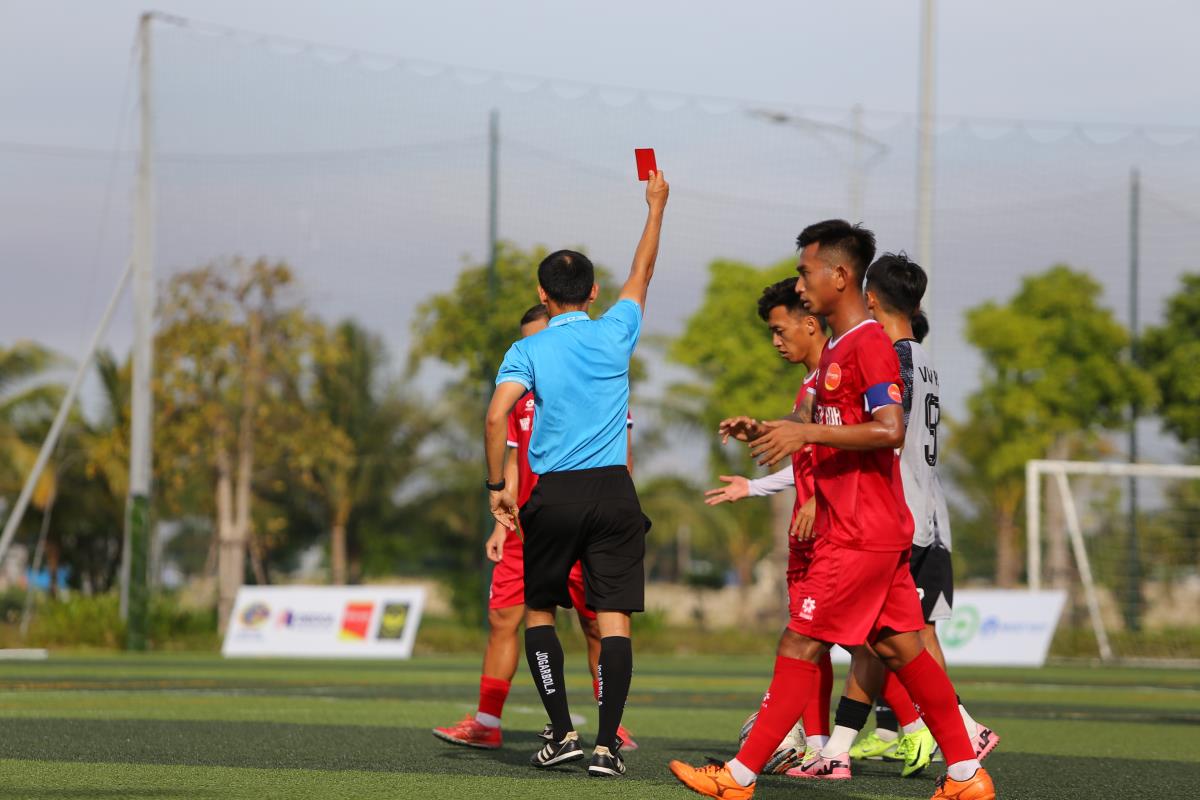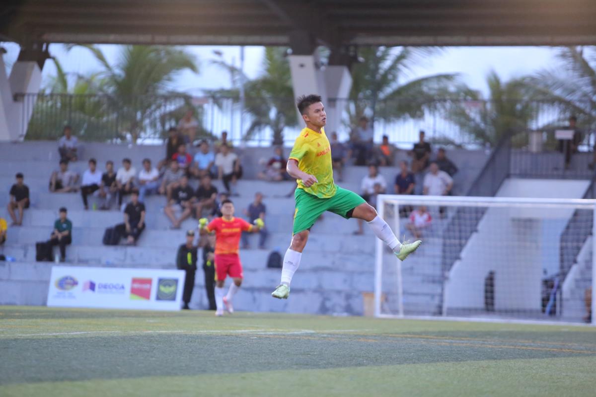 Ở bán kết 1, V&V FC khởi đầu như mơ khi dẫn trước 2-0 chỉ sau 12 phút, trong đó Văn Long lập cú đúp. Tuy nhiên, chấn thương khiến tiền đạo này sớm rời sân vì chấn thương. Phút 28, họ còn phải chơi thiếu người khi Văn Tiến nhận thẻ vàng thứ hai.