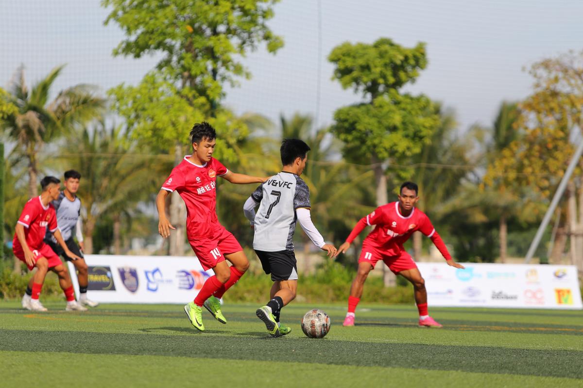 Bán kết 2 giữa VS Travel FC và Hội Doanh nghiệp Hòa Xuân diễn ra căng thẳng, với thế trận đôi công nhưng không bàn thắng trong hiệp 1. Phút 40, Hội Doanh nghiệp Hòa Xuân vươn lên dẫn trước 1-0 nhờ pha lập công của Ngọc Vũ. Chỉ 8 phút sau, VS Travel FC gỡ hòa 1-1 từ cú đánh gót khéo léo của Hoài Nam.